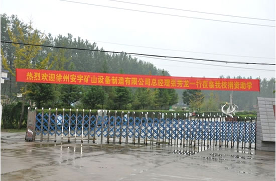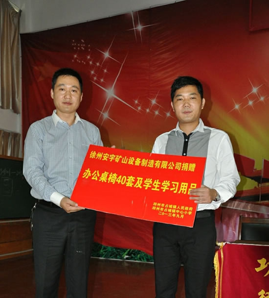 張秀龍是占城鎮(zhèn)陳莊村人,30多歲,在黨的富民政策指引下,依靠自己的智慧和勤勞,創(chuàng)建了徐州市安宇礦山設(shè)備有限公司。該公司長(zhǎng)期與中國礦業(yè)大學(xué)礦山設(shè)備制造研究所合作,所生產(chǎn)的礦山機(jī)器設(shè)備遠(yuǎn)銷越南、韓國、朝鮮等國家,知名度很高,在短短的幾年來內(nèi)固下資產(chǎn)達(dá)到了5千萬,獲得良好的經(jīng)濟(jì)效益,他也成為徐州市有名的青年民營企業(yè)家。今年8月初,張秀龍總經(jīng)理回老家通過了在學(xué)校當(dāng)教師的哥哥張秀平了解到學(xué)校部分學(xué)生家庭困難、生活無保障;教師辦公條件落后,主動(dòng)聯(lián)系學(xué)校沈東凡校長(zhǎng),表示要捐資助學(xué),為家鄉(xiāng)教育事業(yè)做一份貢獻(xiàn)。9月6日上午,張秀龍總經(jīng)理就把40套嶄新的辦公桌椅送到了學(xué)校;9月9日上午,又冒雨帶著學(xué)習(xí)用品親自到校慰問一些品學(xué)兼優(yōu)且家庭困難的學(xué)生,看望教師的工作環(huán)境。