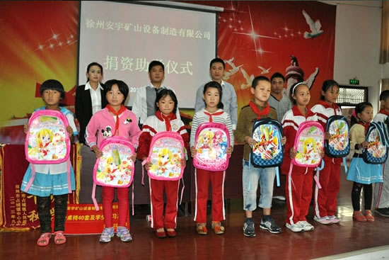 9月9日上午,秋雨霏霏,在占城鎮(zhèn)中心小學(xué)樹人報(bào)告廳,舉行了“致富不忘回報(bào)社會(huì),情系家鄉(xiāng)教育事業(yè)”愛心捐資助學(xué)活動(dòng)儀式。徐州市安宇礦山設(shè)備有限公司、徐州市***青年民營企業(yè)家張秀龍及夫人卞艷萍給該校汪翼等10名品學(xué)兼優(yōu)的行困孤兒同學(xué)每人發(fā)放新書包和學(xué)習(xí)用品,并給學(xué)校捐助了40套價(jià)值20000元嶄新的教師辦公桌椅,此善舉感動(dòng)了全體師生。