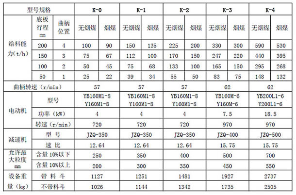 K型往復(fù)式給煤機(jī)用于煤或其它磨琢性小、粘性小的松散粒狀物料的給料,將儲倉或料坑里的物料連續(xù)均勻地卸落到運(yùn)輸設(shè)備或其他篩選設(shè)備中。