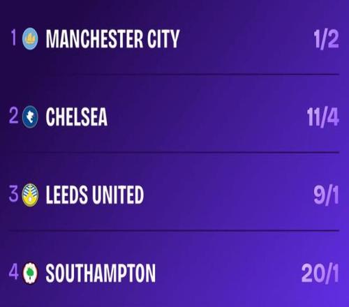 足總杯四強(qiáng)奪冠賠率:曼城第1,切爾西第2,南安普頓第4
