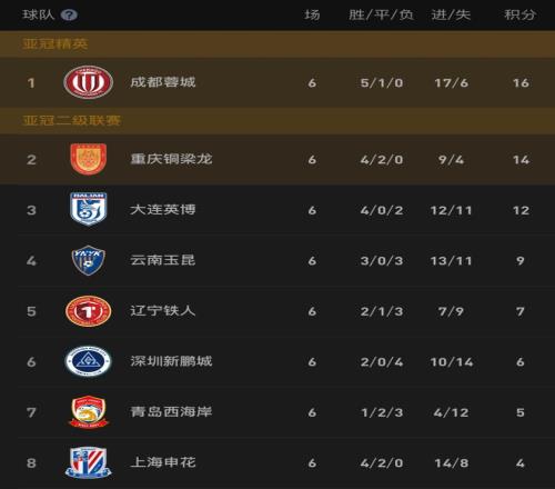 中超6輪后3強(qiáng)不敗+蓉城2分領(lǐng)跑申花升第83隊(duì)負(fù)分下輪3場焦點(diǎn)戰(zhàn)