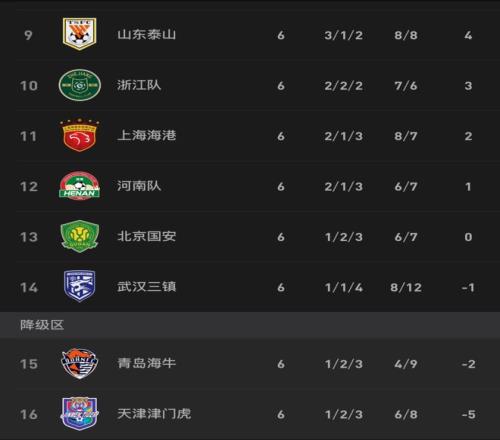 北京時(shí)間4月18日晚,中超第6輪8場角逐全部結(jié)束。本輪過后,依然有3支球隊(duì)保持不敗。9支被罰扣分的球隊(duì)中,依然有3隊(duì)未能積分轉(zhuǎn)正。