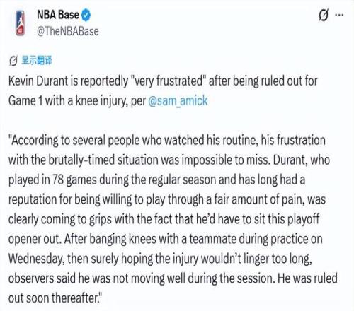 Amick報(bào)道稱,賽前約兩小時(shí),杜蘭特上場(chǎng)試水受傷膝蓋,無(wú)需醫(yī)療檢查也能看出,他傷勢(shì)明顯、狀態(tài)糟糕,滿臉寫著痛苦。
