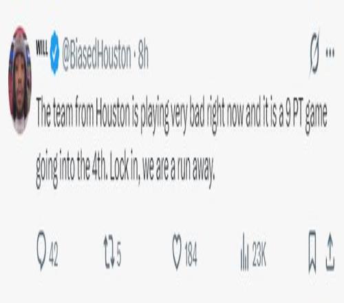 申京19中6、阿門18中7、小賈14中5、謝潑德20中6、霍勒迪4中0、泰特5中1,火箭全隊93中35,三分命中率37.6%,三分球33中11,三分命中率33.3%?;鸺哪贻p核心們太拉胯了。休斯頓的媒體與記者們紛紛朝著火箭開炮。