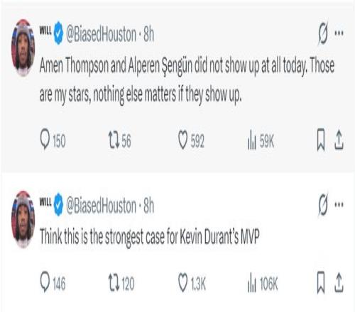 休媒Will寫道:阿門-湯普森與 申京這場比賽根本沒有發(fā)揮,他們是我們的核心球員,就算他們根本沒有登場的感覺。這場比賽足以證明杜蘭特才是火箭真領(lǐng)袖了吧。