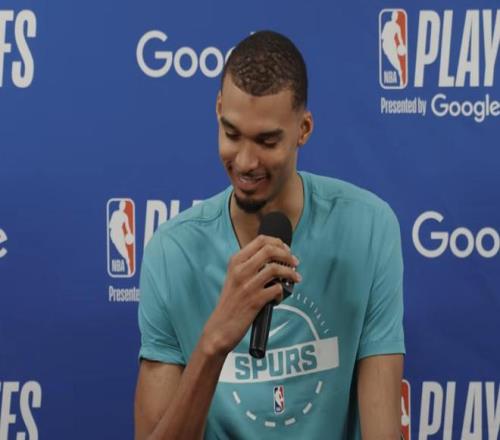 北京時(shí)間4月19日,NBA季后賽首輪的爭(zhēng)奪繼續(xù)進(jìn)行,在一組西部對(duì)決中,馬刺主場(chǎng)111-98戰(zhàn)勝開(kāi)拓者,總比分1-0領(lǐng)先。賽后,馬刺隊(duì)中鋒文班亞馬接受了媒體的采訪。